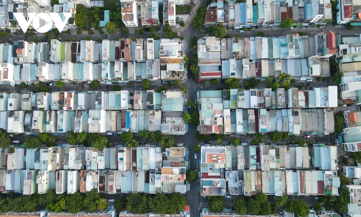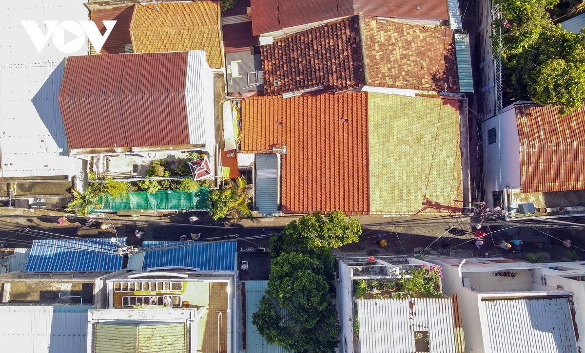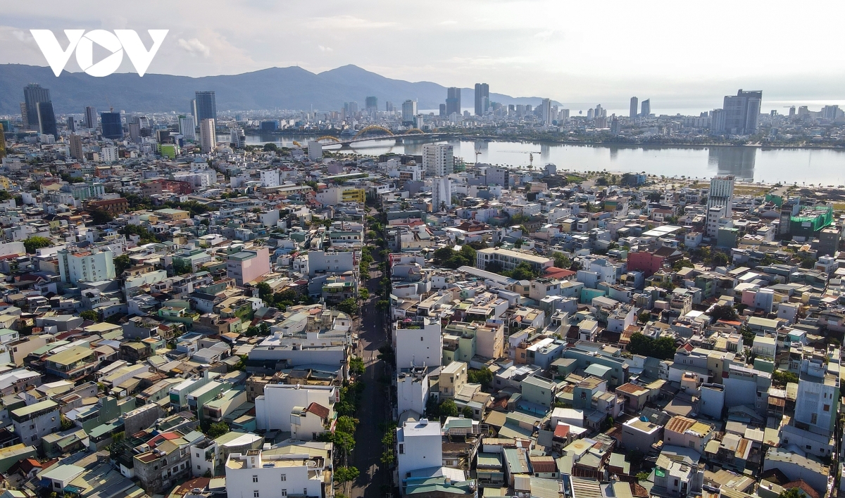 A residential area on Cao Xuan Duc street in Hai Chau district is recorded through a drone on August 29. |