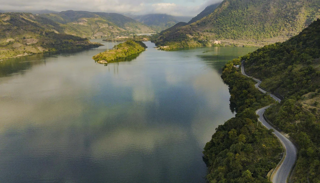 The town, consisting mainly of the Thai ethnic group, lies peacefully by the shores of the hydropower reservoir. (Photo: VNA) |