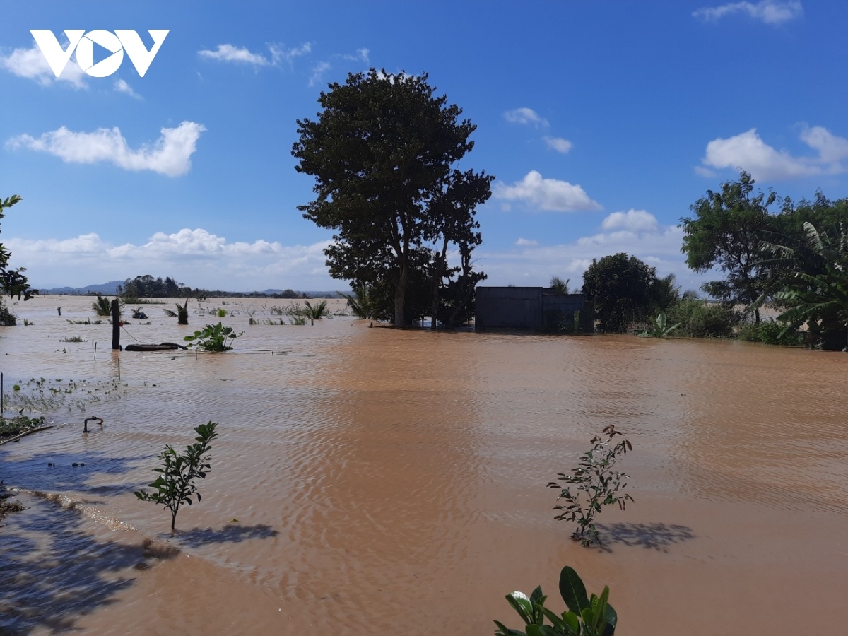 The entirety of Krong No district in Dak Nong province is left heavily flooded, causing severe damage to the property and crops of local people. |