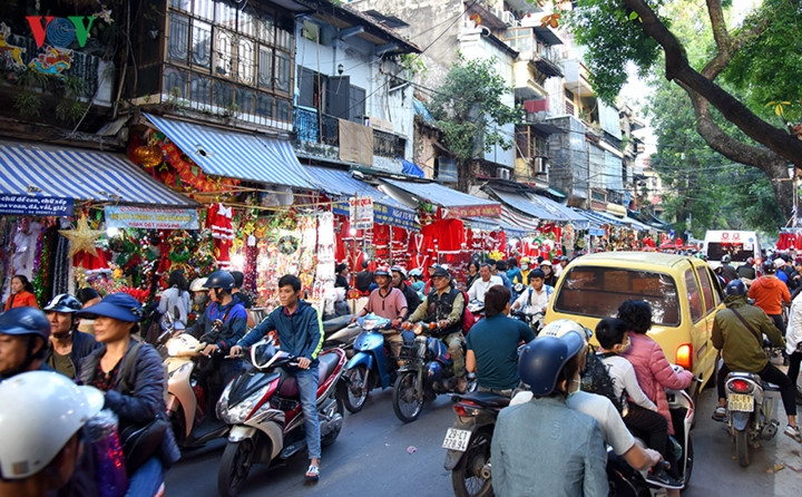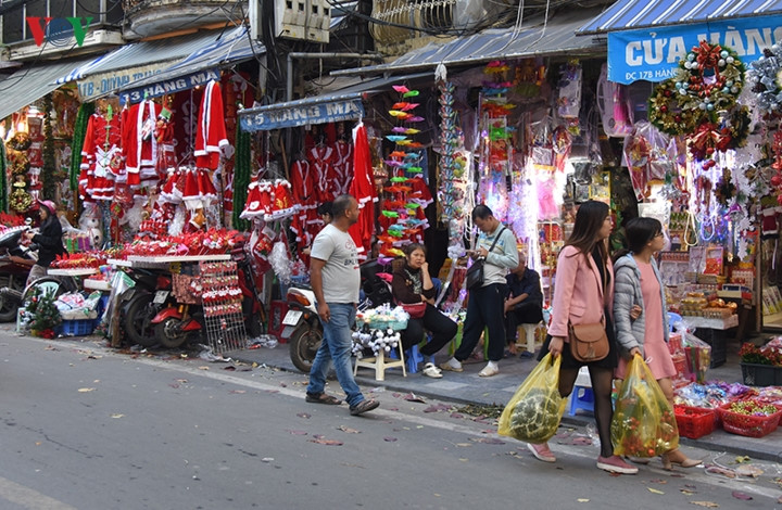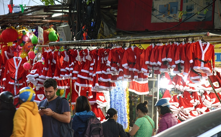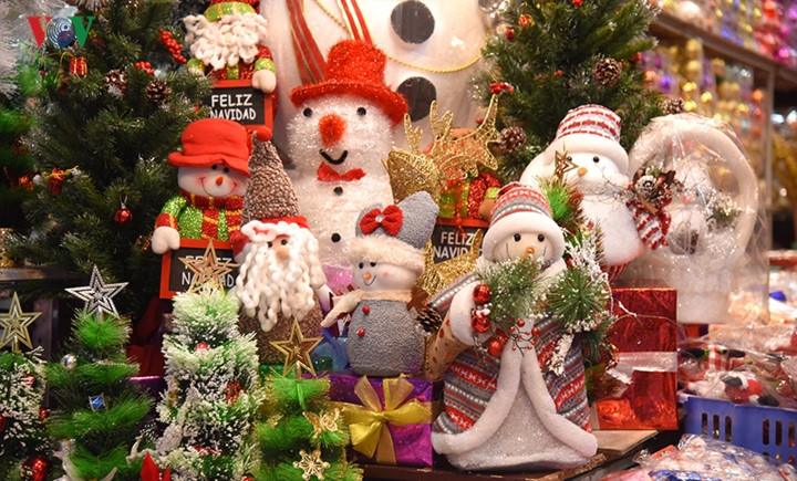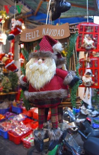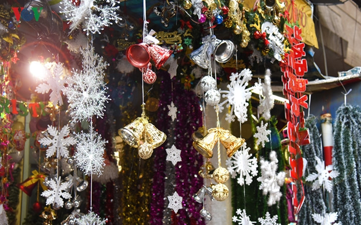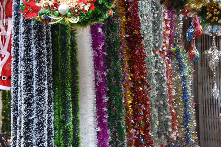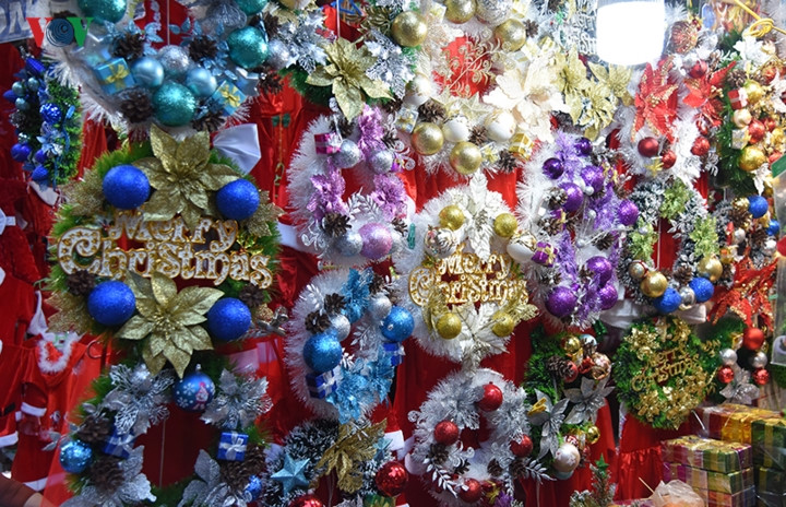 The market for Christmas decorative items is bustling as Christmas draws near. |