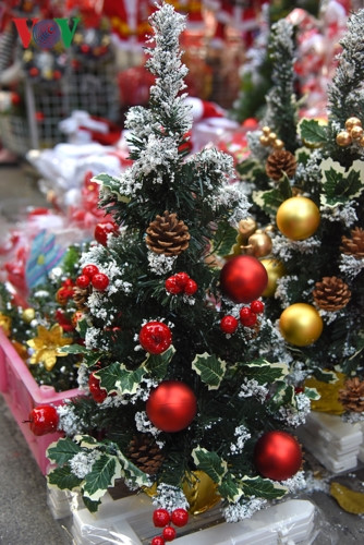 Pine tree, bells, lights and Santa Claus costumes are the most sought-after by people this year. Prices of these products increased by 5-10%, ranging between VND300,000 and VND1 million for pine tree. |
