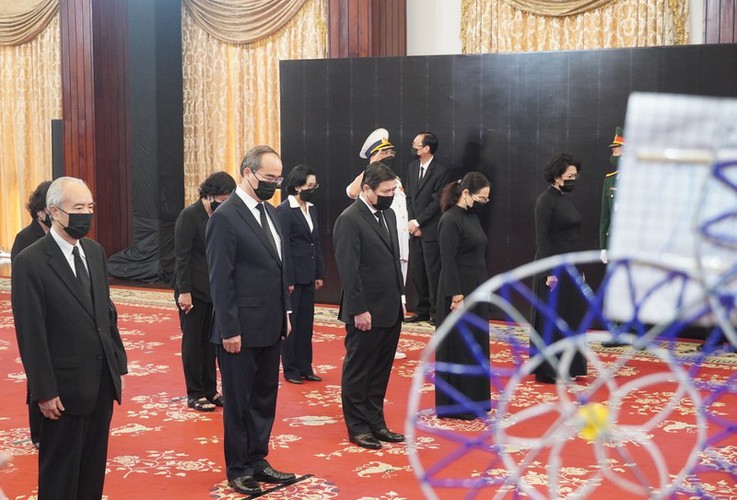 A delegation from HCM City led by Secretary of HCM City’s Party Committee Nguyen Thien Nhan pays tribute to former Party leader at the Thong Nhat (Reunification) Conference Hall. |