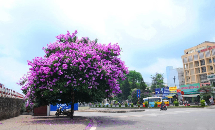 | A street corner in Hanoi has been covered with elegant crape myrtles. |