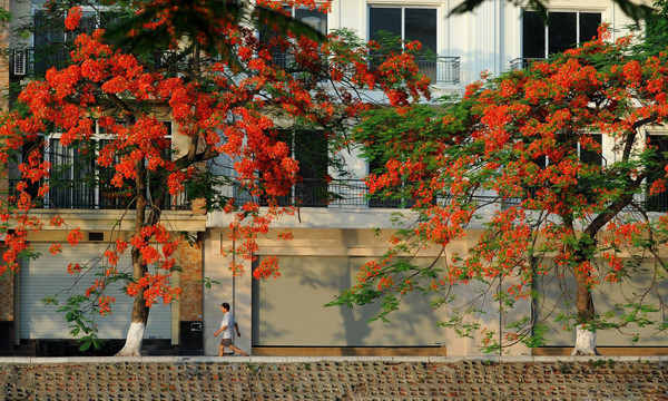 | The streets look increasingly more beautiful after being adorned with the red blossoms. |