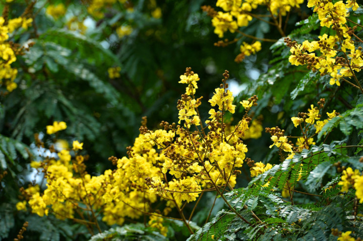 | The sight of colourful Muong Hoang Yen, also known as golden shower trees, can be seen beginning to bloom and fill the streets of Hanoi with their vibrant yellow colour. |