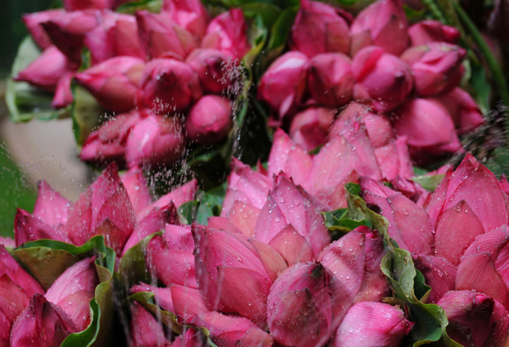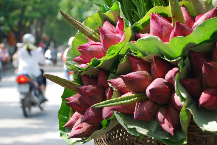 | The streets of Hanoi have been swamped with the pink and white blossoms of lotus flowers being sold by street vendors. |