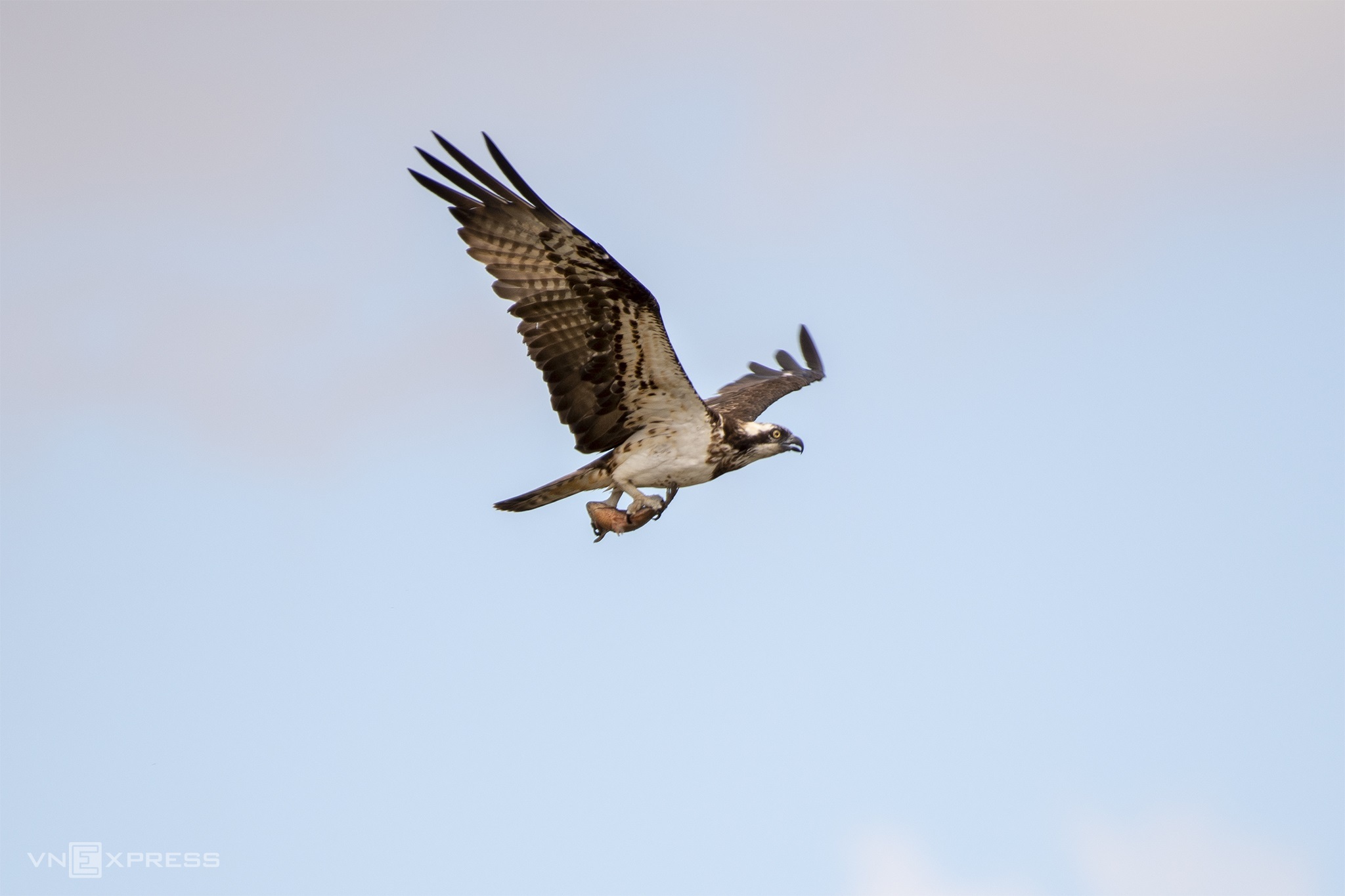 Osprey (Pandion haliaetus), which appear near Xuan Huong Lake, is brown on the upperparts and predominantly greyish on the head and underparts. The osprey's diet consists almost exclusively of fish.