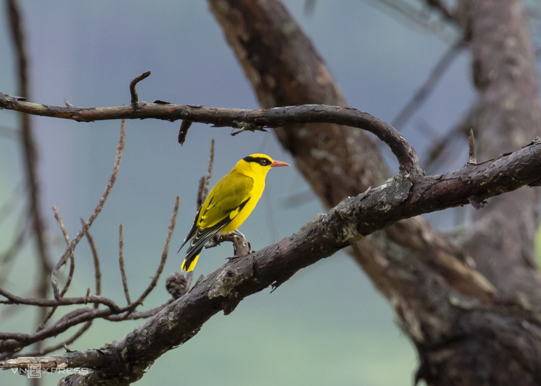 Tuyen Lam Lake or Dat Set Village hosts colorful birds living in low forest areas surrounded by pine trees and shrubs, such as the slender-billed oriole (Oriolus tenuirostris). This bird has a beautiful golden oriole with a long, lipstick-red bill and an elegant black band across the eyes. |