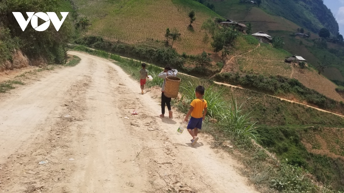Some children walk down the two-km road each day to bring fresh water for their families in Duc Hanh border commune of Bao Lam district in Cao Bang province. |