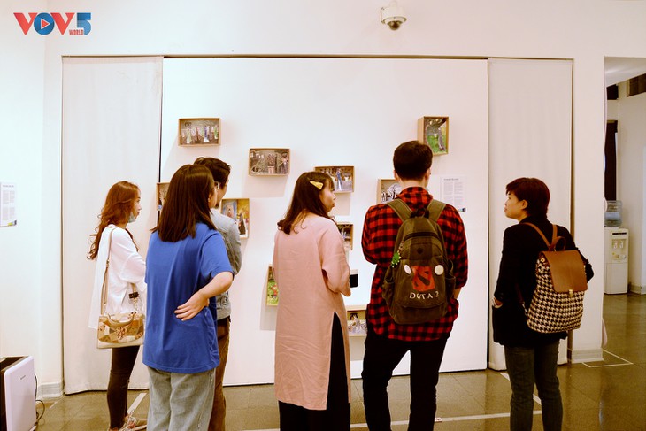 In the spotlight is Van Minh Duc’s “Stream”, which consists of 168 drawings that Duc selected from his collection of over 1,000 works. He created a stream color with the paintings flowing down from the top. |