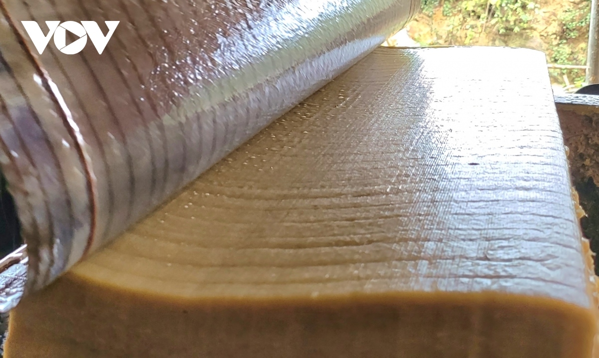 Young bamboo plants are soaked in water, pounded, and then crushed into pulp before being mixed with resin of several other plants. An indispensable additive is the sap of the “chầy kêu” tree to enhance adhesion.