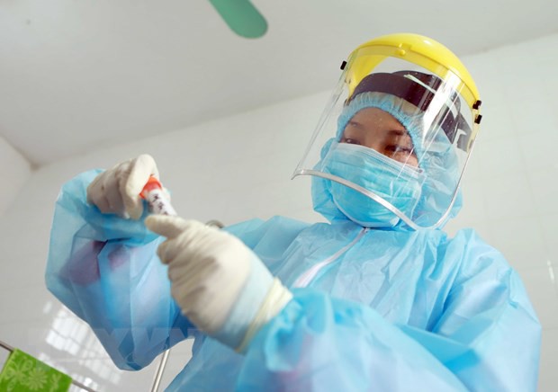 | Technician Nguyen Thi Hang of Vinh Phuc province’s Disease Control Center tests samples at Quang Ha clinic. (Photo: Hoang Hung/VNA) |