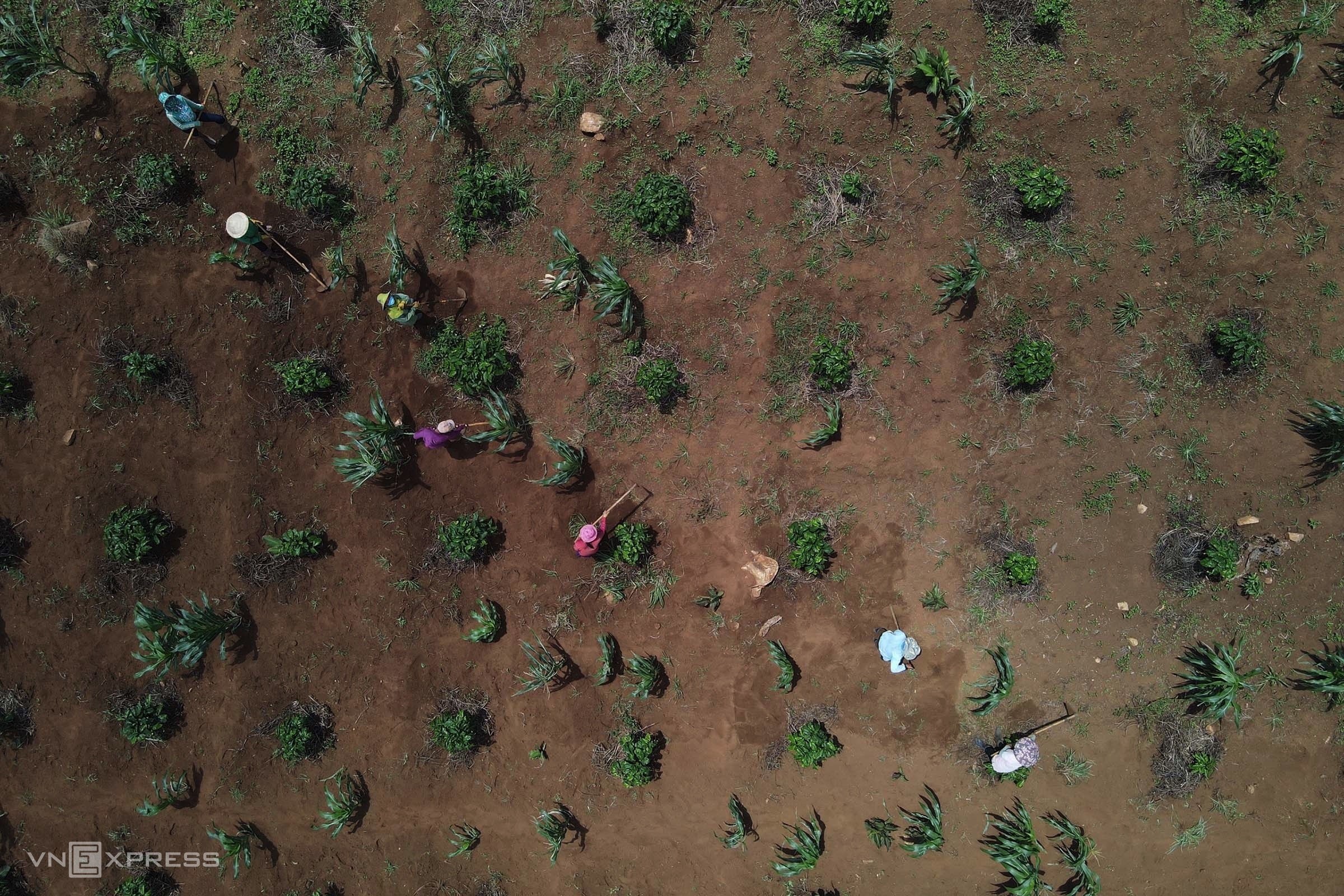 Mit, 45, clears her family's 1,500-square-meter cassava field at the foot of Chu Dang Ya volcano. |