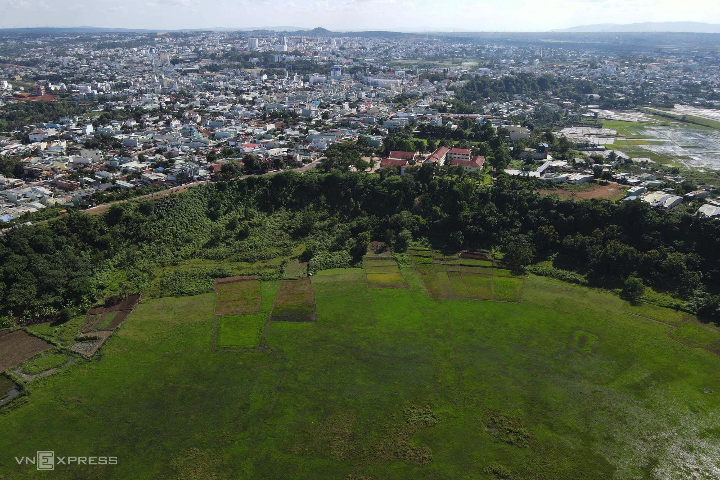 Remnants of an ancient, concave-shaped crater in Op Village of Pleiku Town with a radius of about 500 meters, forming a large valley. The land is fertile and has a stable water source, allowing locals to grow rice, potatoes and other vegetables on the crater that has been dormant for millions of years. |