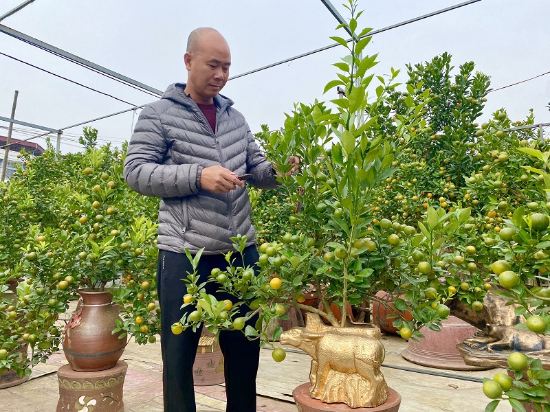 | It’s more than one month to go to the Lunar New Year of the Buffalo. Gardeners in Tu Lien are at the final steps to complete beautiful kumquat ornamental trees to serve customers. |