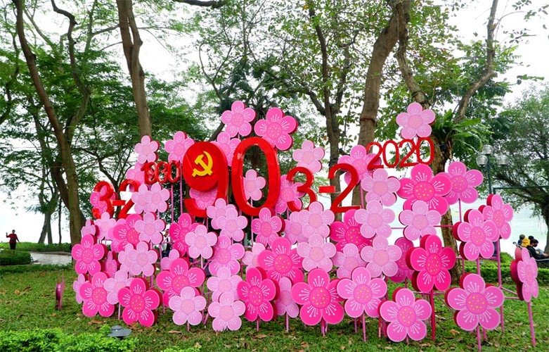 (VOVWORLD) - Streets throughout Hanoi can be seen bearing incredible festive decorations such as colourful national flags, flowers, and numerous slogans as a way of celebrating the upcoming Lunar New Year and the 90th founding anniversary of the Communist Party of Vietnam, which was observed on February 3, 1930.