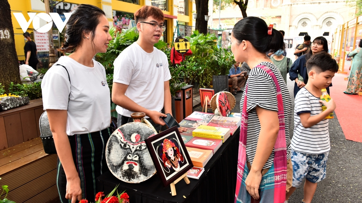A cultural week gets underway on Ho Chi Minh City book street from January 23. Visitors to the event can view local ceramic products and folk paintings on show. |