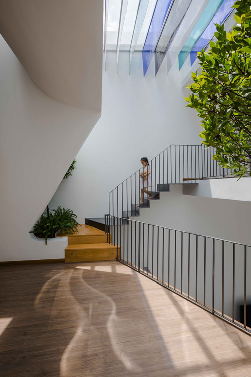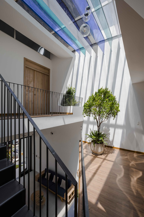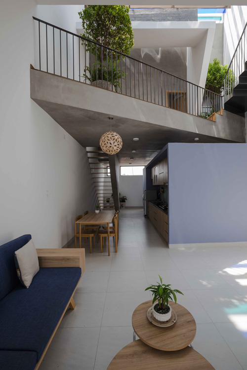 | The common space, filled with light, wind, and plants helps connect the family regardless of proximity. |