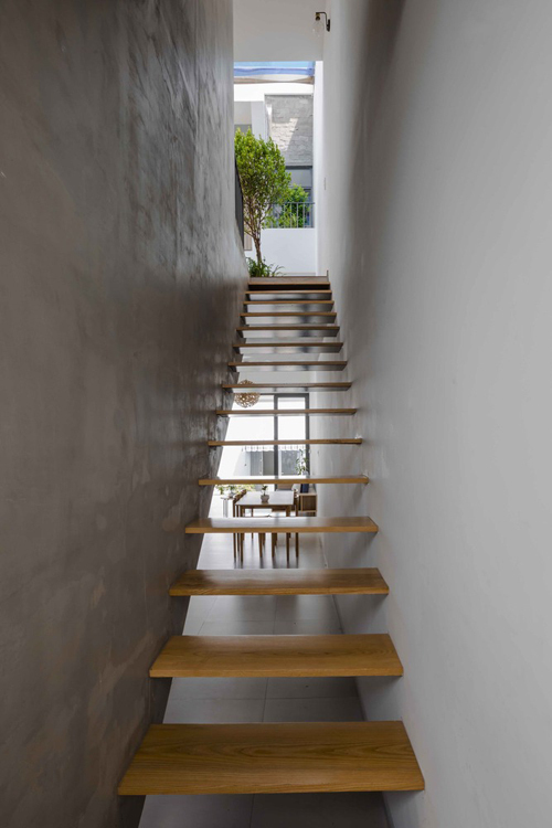 | The two-floor house, 90 square meters, is home to a family with two young daughters. Homeowners had initially sought a common space for their children to play around and read books. |