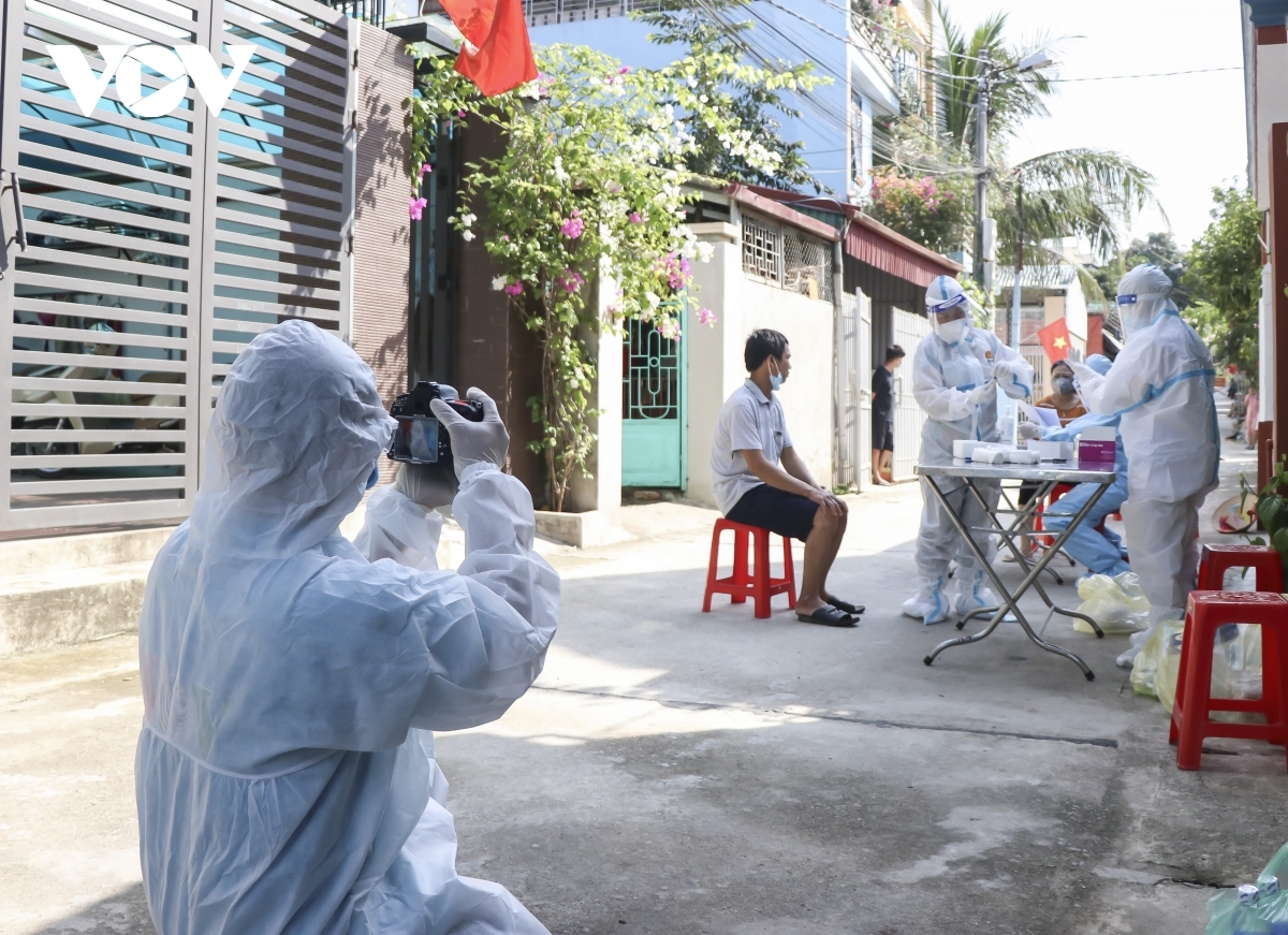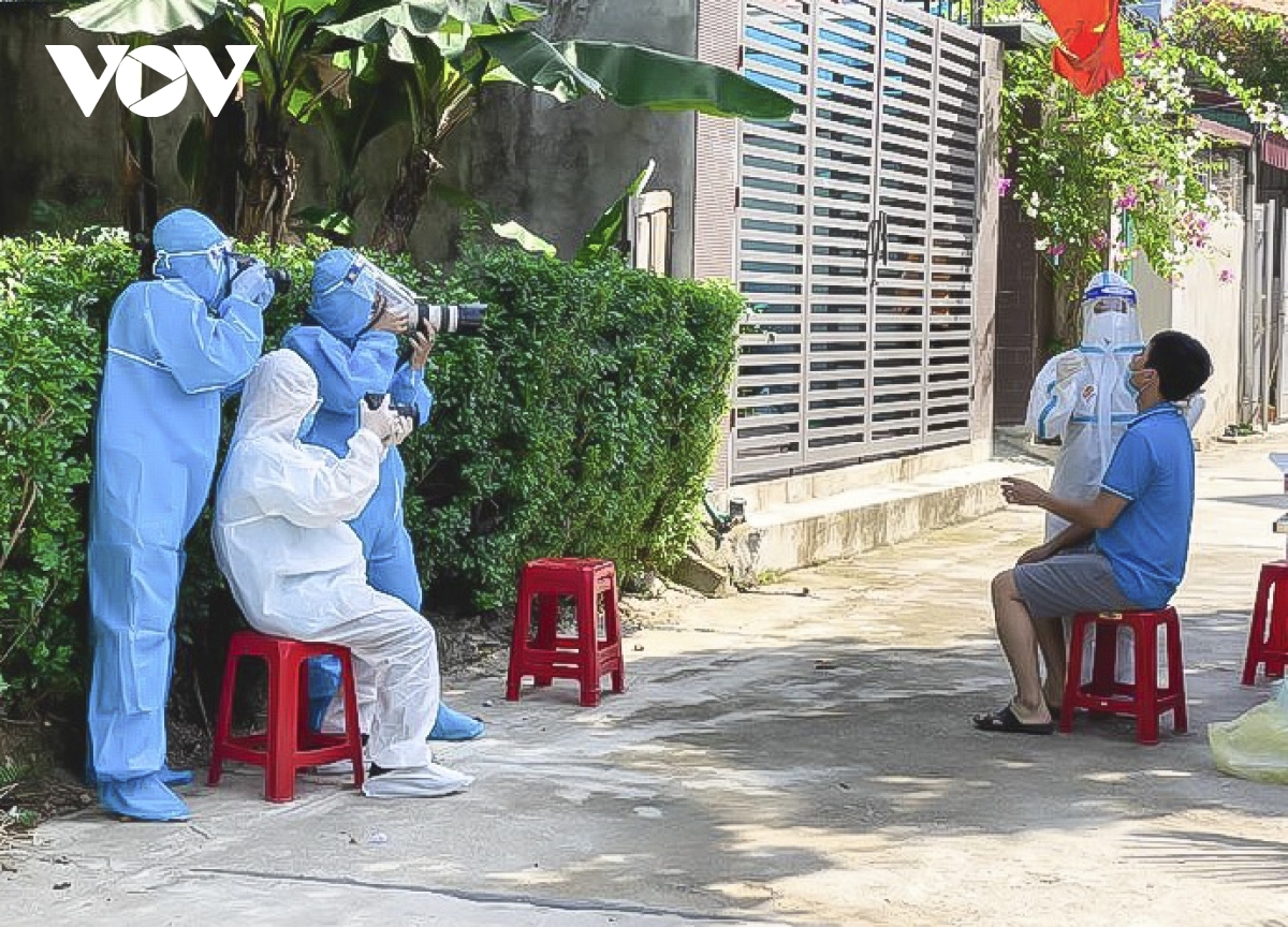 Reporters detail breaking news at a COVID-19 hotspot in Him Lam ward in Dien Bien Phu city. |