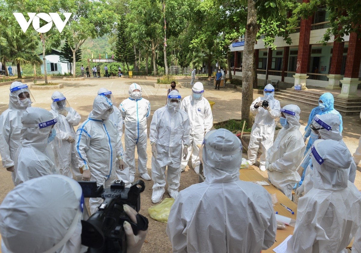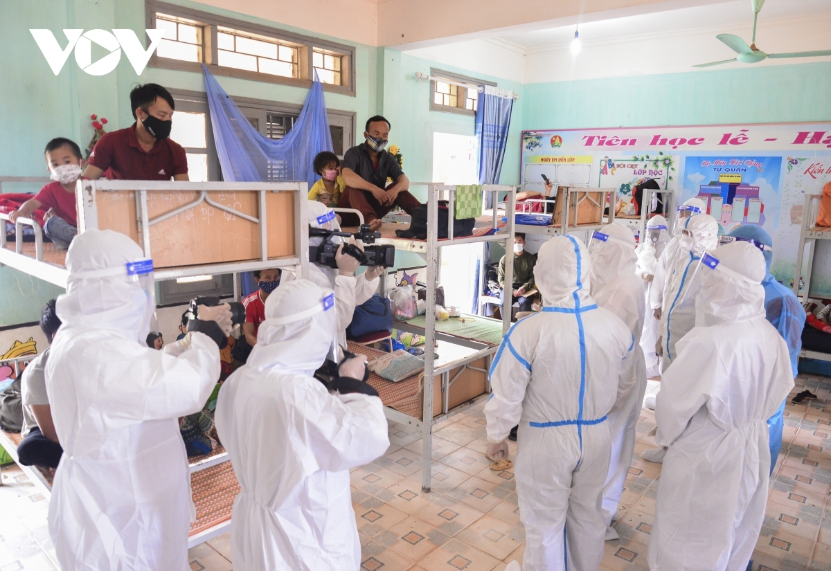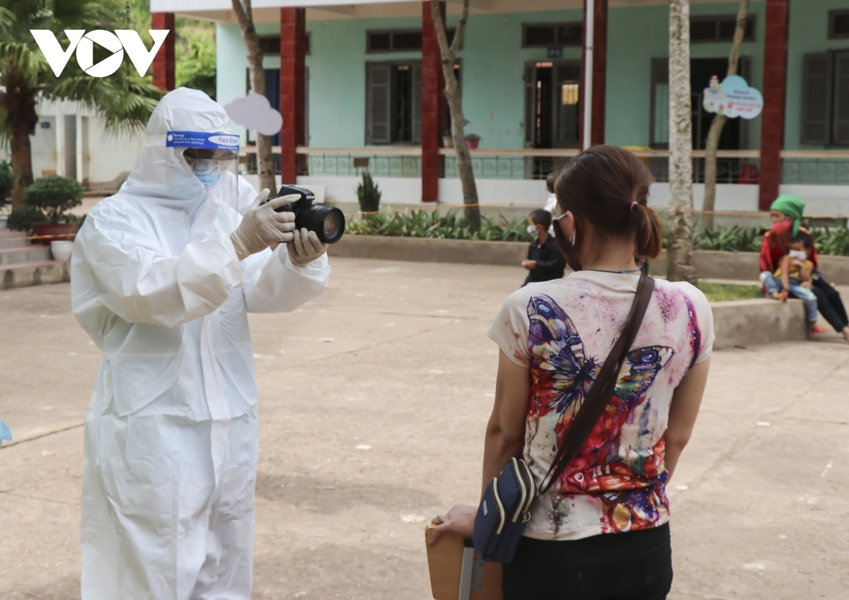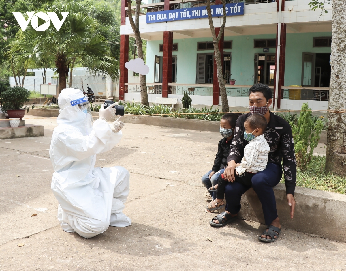 A VOV (Voice of Vietnam) reporter covers the pandemic in Si Pa Thin commune, a COVID-19 hotspot. |