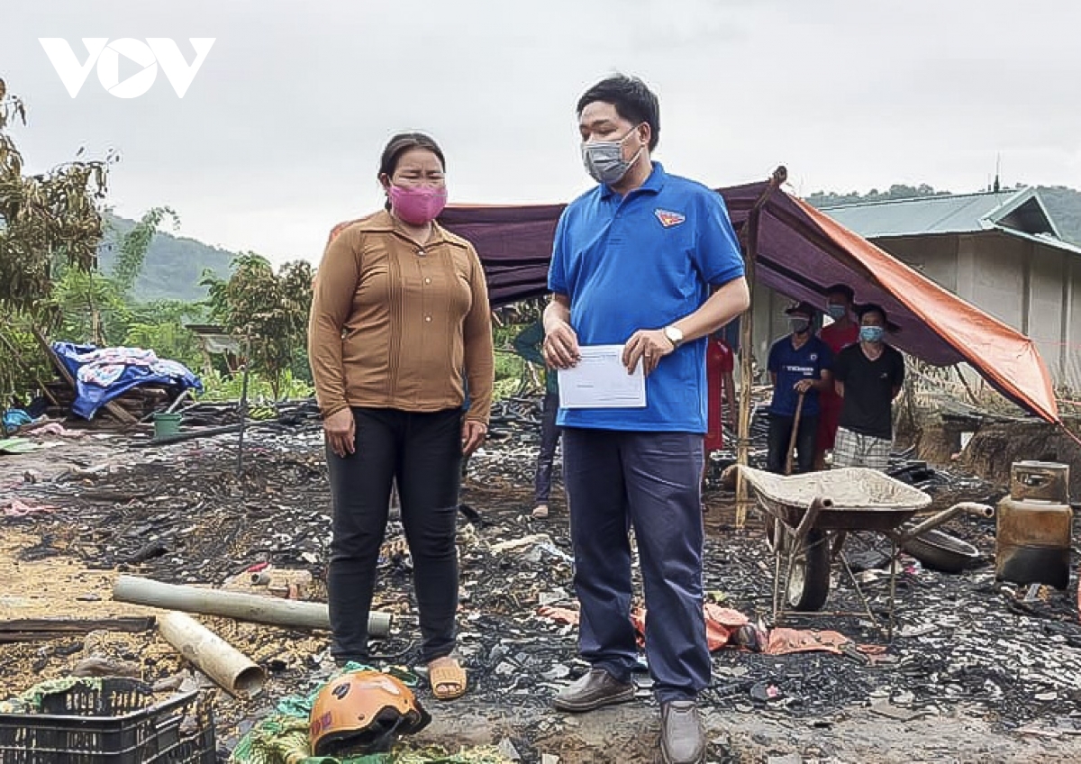 Reporters of Dien Bien Radio – Television present gifts in support of local authorities. |