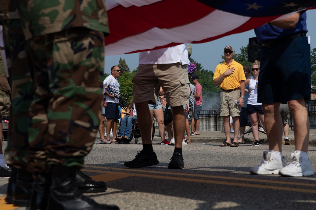 A man holds his hand over his heart as the American flag is folded after an Independence Day celebration parade on July 4, 2021 in Brighton, Michigan. Fourth of July parades resumed this year amid loosened COVID-19 restrictions in Michigan. (Photo: EMILY ELCONIN, GETTY IMAGES) |