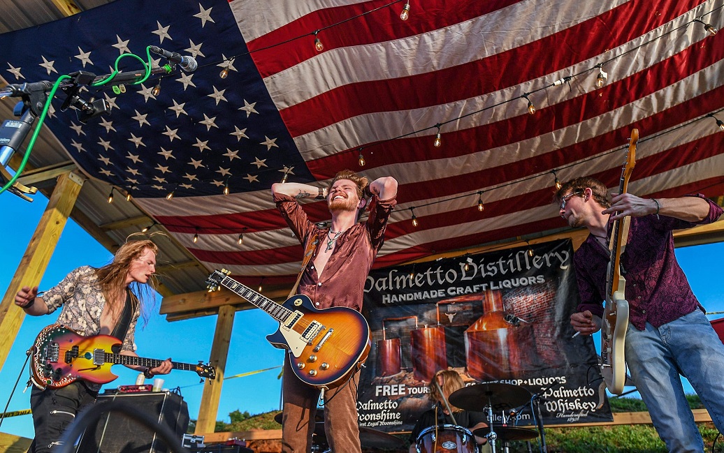 Owen Dills, Harley Dills, and TJ Hunt, guitarists with Velvet Willow rock band from Athens, Ga., play during the Fourth of July Celebration at Big Water Marina and Campground in Starr, S.C. Saturday, July 3, 2021. (Photo: KEN RUINARD, THE ANDERSON INDEPENDENT MAIL/USA TODAY NETWORK) |