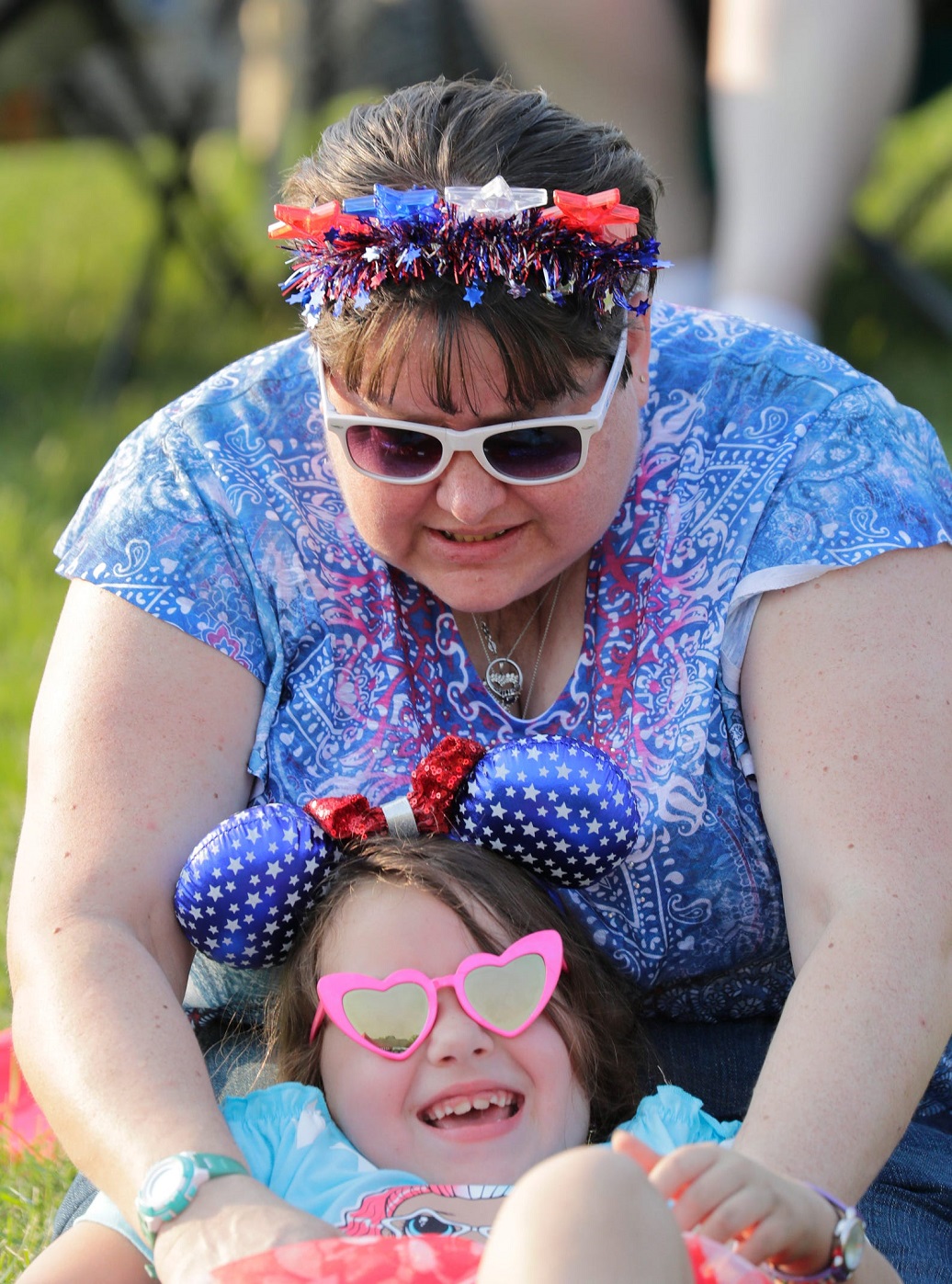 Michelle Bremer tickles her neice Britney as they listen to music during the annual Festival Foods Fireworks event Saturday, July 3, 2021, at Memorial Park in Appleton, Wis. The two are from Appleton. (Photo: DAN POWERS, THE POST CRESCENT/USA TODAY NETWORK) |