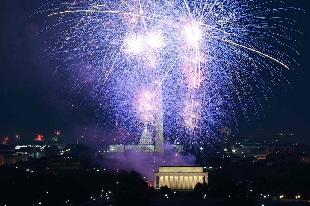 Fireworks illuminate the sky above the Lincoln Memorial on the National Mall during Independence Day celebrations in Washington, DC on July 4, 2021. (Photo: ROBERTO SCHMIDT, AFP VIA GETTY IMAGES) |