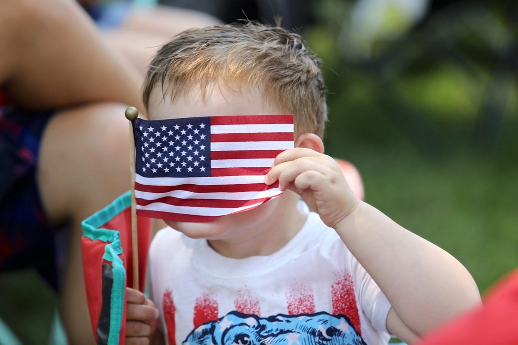 Jackson Potocki, 2, of Belvidere, hides behind his flag while waiting for the start of the parade on Sunday, July 4, 2021, in downtown Cherry Valley, Ill. (Photo: SUSAN MORAN, ROCKFORD REGISTER STAR/USA TODAY NETWORK) |