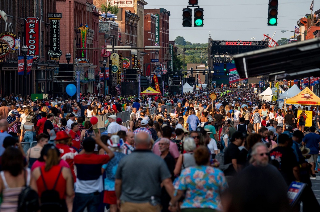 People fill Lower Broadway during the Let Freedom Sing! Music City July 4th event in Nashville, Tenn., Sunday, July 4, 2021. (Photo: JOSIE NORRIS, THE TENNESSEAN/USA TODAY NETWORK) |