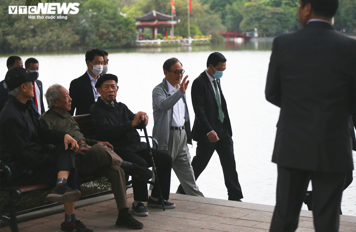 Many Hanoians who do the morning exercise there every day are surprised to see the special guest from Japan. |