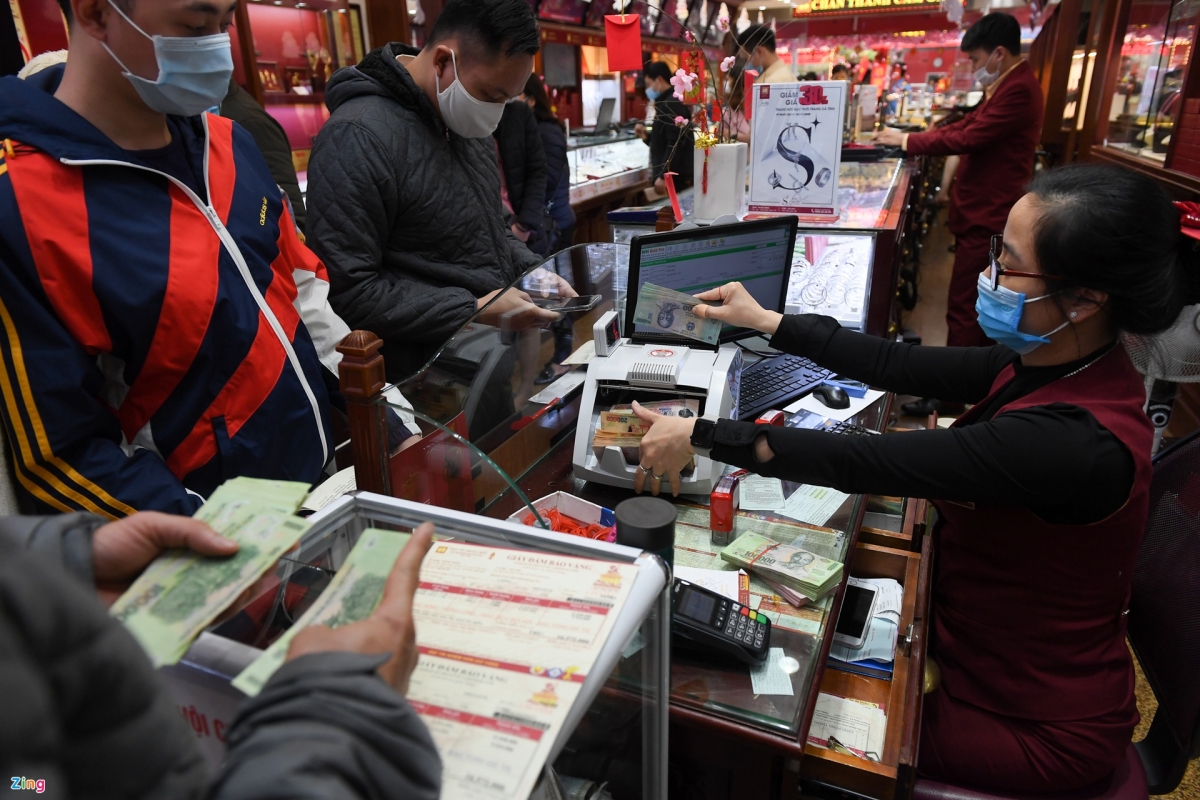 Van Thang, a resident of Thanh Tri district in Hanoi, is delighted to purchase gold in order to receive luck ahead in the new lunar year. |