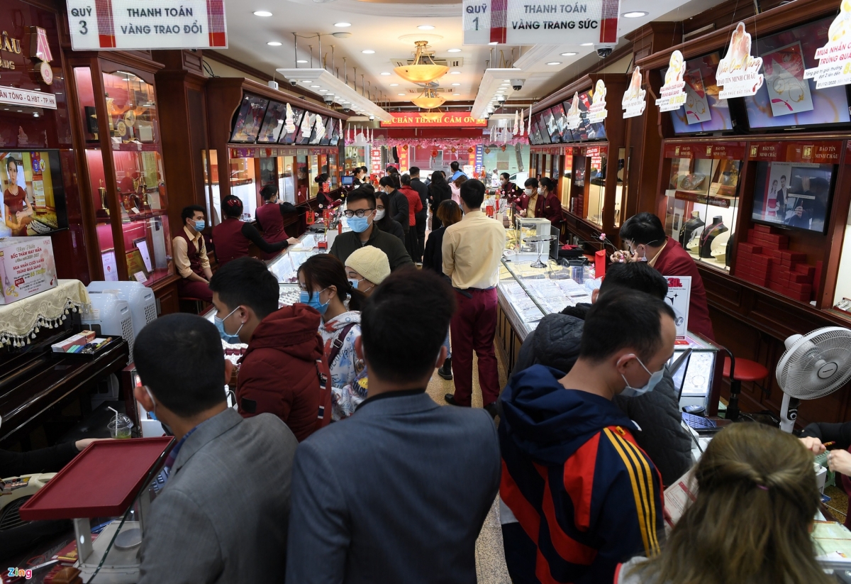 Bao Tin Minh Chau gold shops in Hanoi have witnessed a huge influx of customers since February 17 ahead of God of Wealth Day. |