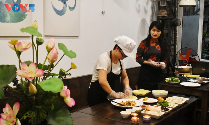 ![]() Nguyen Hien, the restaurant’s owner, told VOV why she opened Làng Ta, “Opening the vegetarian restaurant came to me as a predestined affinity with Buddhism. I think I want to spread the predestined affinity to many others so that they can change their minds and have more positive thinking about protecting the environment and cleansing and detoxing their bodies. This is what many women care about. I think it is very practical for our physical and spiritual life.” |