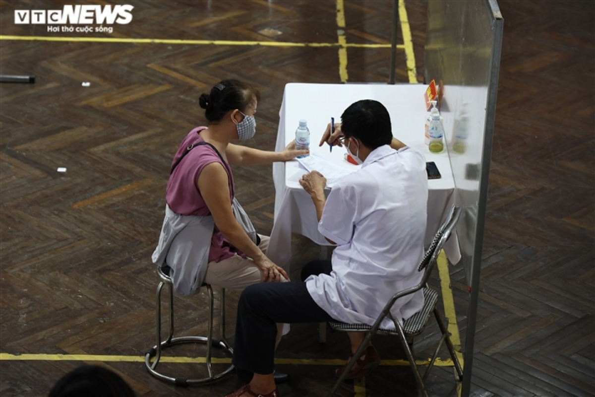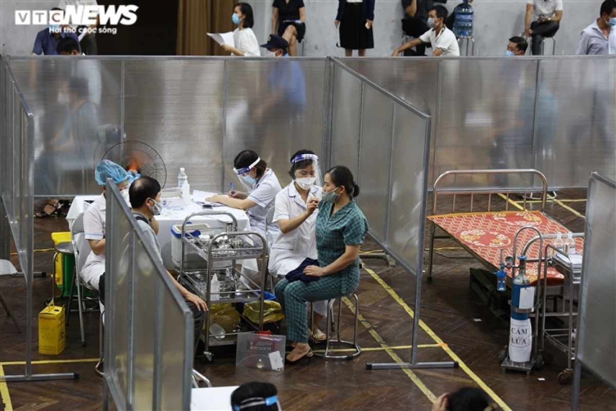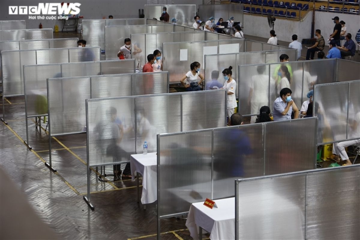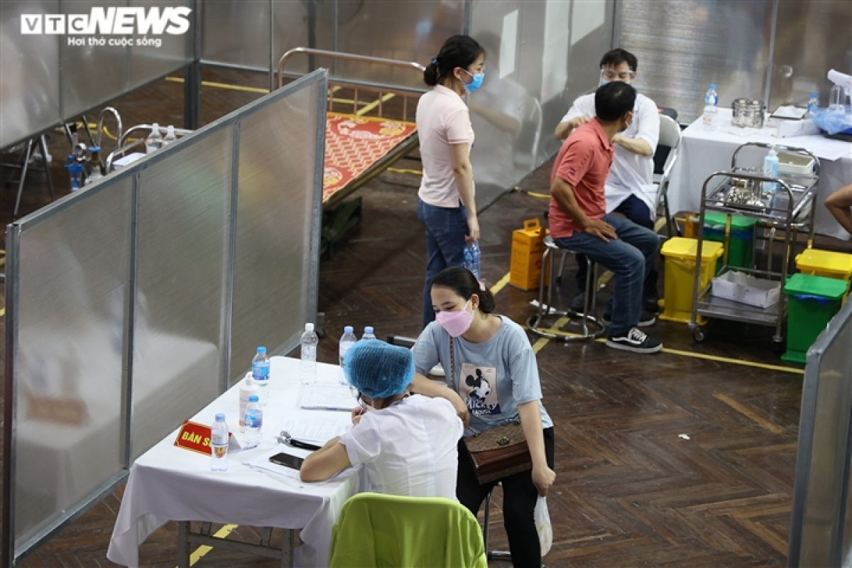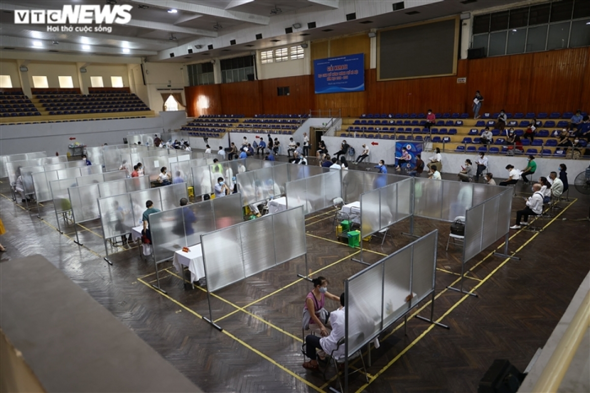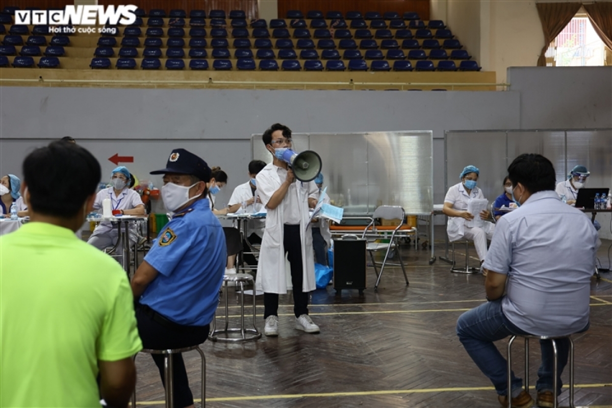 Trinh Hoai Duc gymnasium is one of 10 inoculation sites set up around Dong Da district in early August.