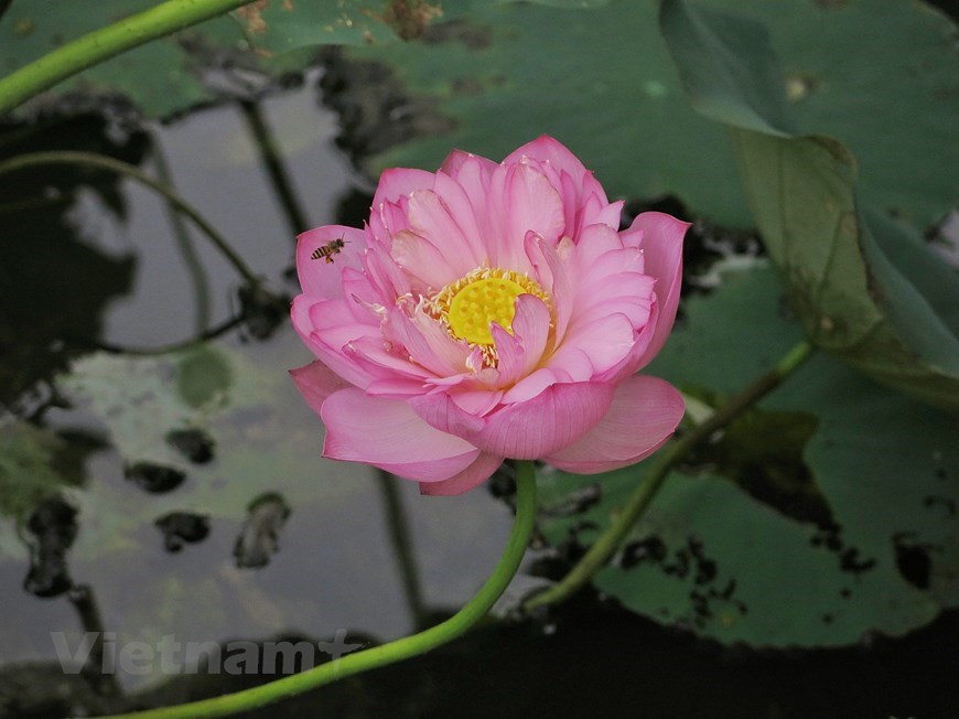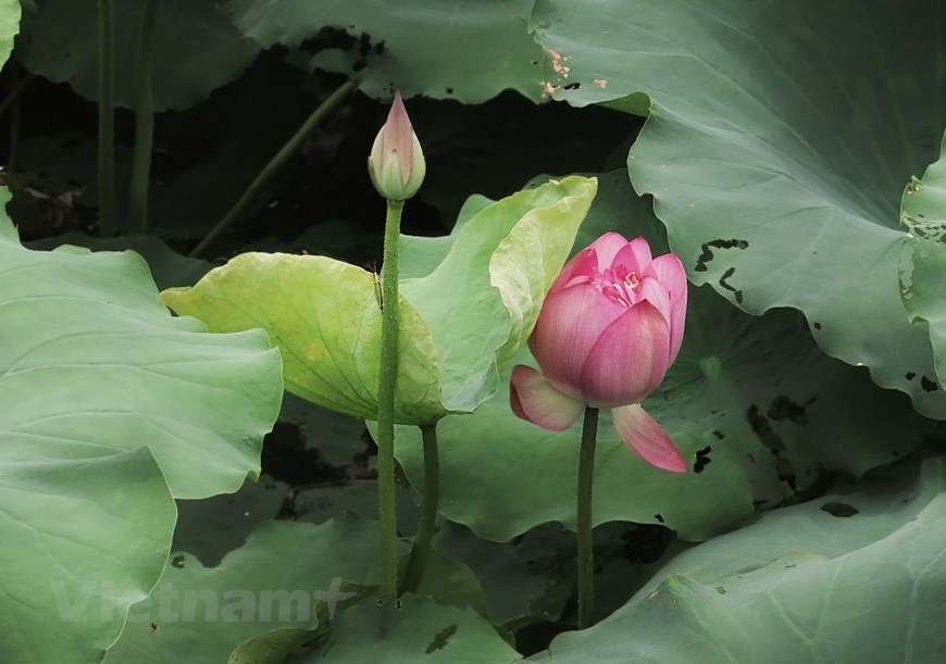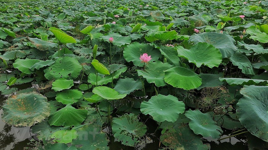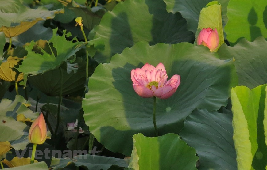 ‘Hundred-petal’ lotuses show off their beauty in the sunlight. |