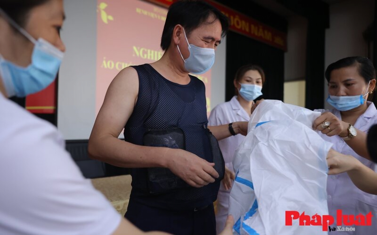 The thermal shockproof T-shirt fits inside the protective suit and does not hinder the activities of medical staffs, helping them to cool off. (Photos: phapluatxahoi.vn)