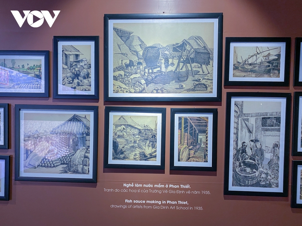 | Paintings detail the process of making fish sauce in Phan Thiet city in 1935. |