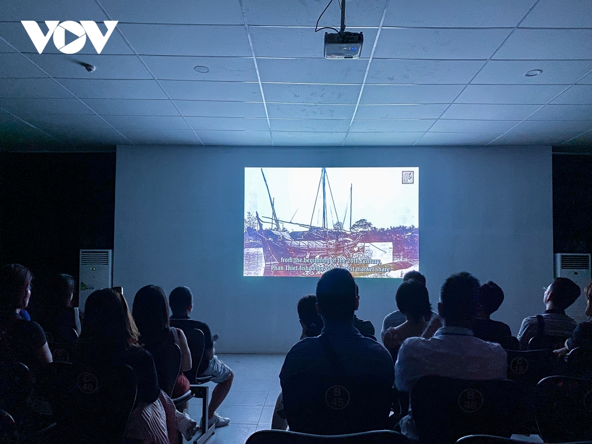 | On upon arrival, visitors view a short film on fish sauce before they start the museum tour. |