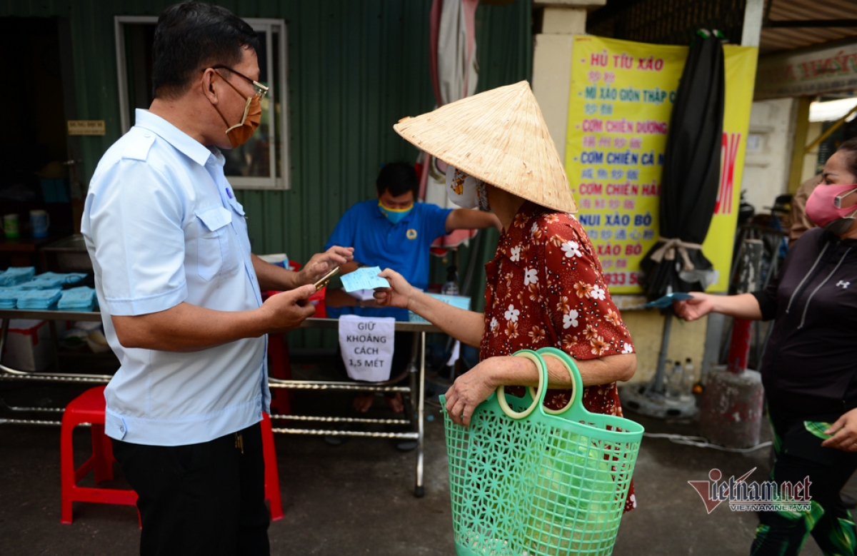 Since the fourth wave of the COVID-19 outbreak emerged in Ho Chi Minh City, Binh Thoi market has become the first place in the city to apply the market coupon scheme in order to competently manage people entering and leaving the area. |