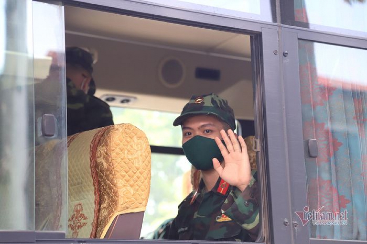Military doctors and nurses say farewell to their friends before leaving for Ho Chi Minh City. |