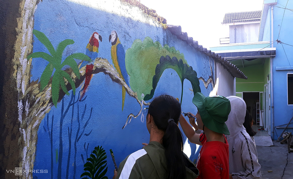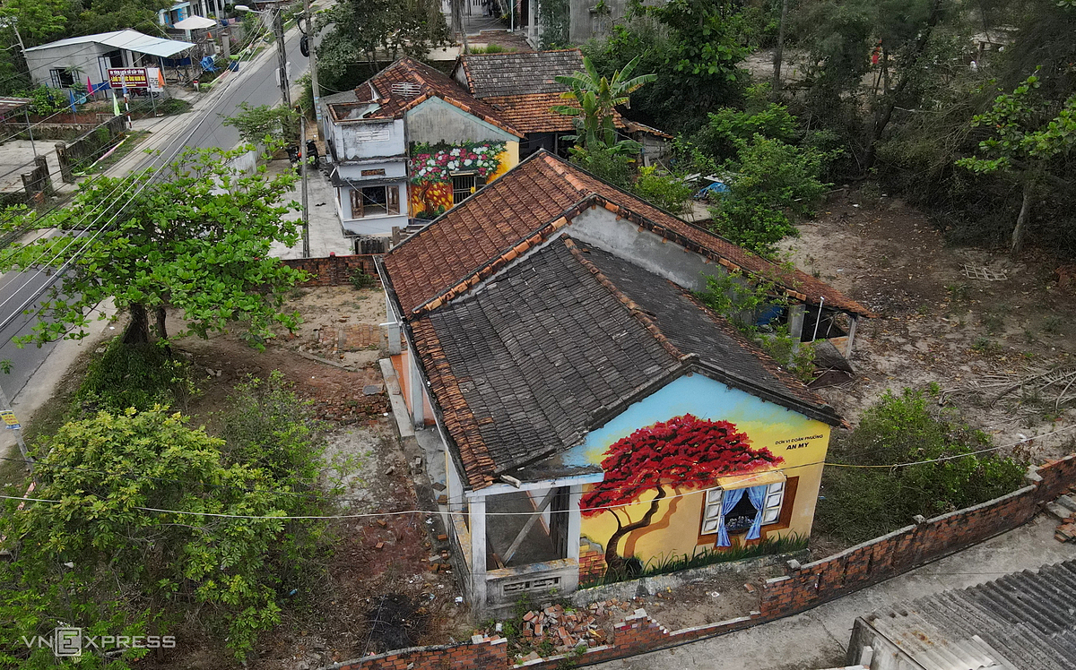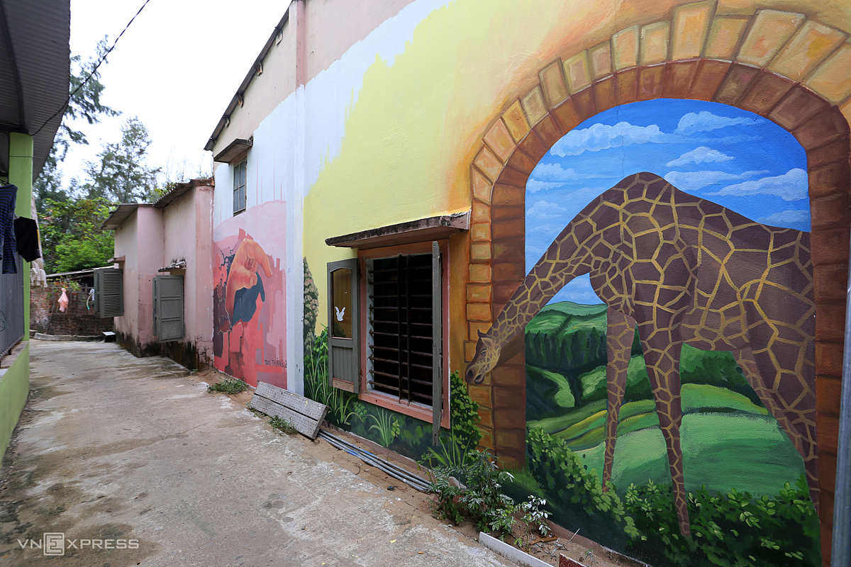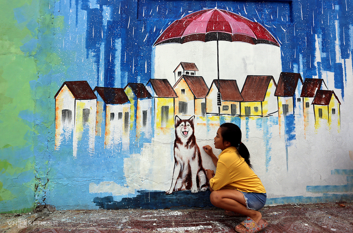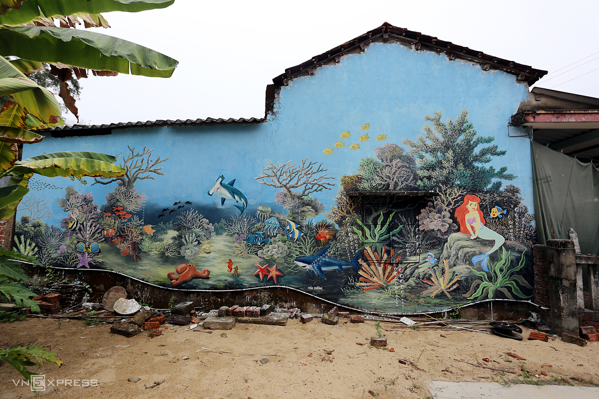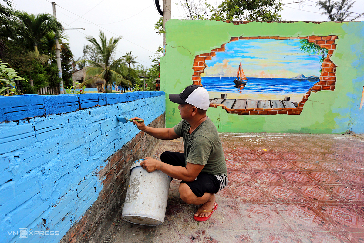Tran Khanh Binh, a villager, decorates his home."Before the pandemic broke out, a large number of visitors flocked to visit the mural village but there are few at this time," he said. |