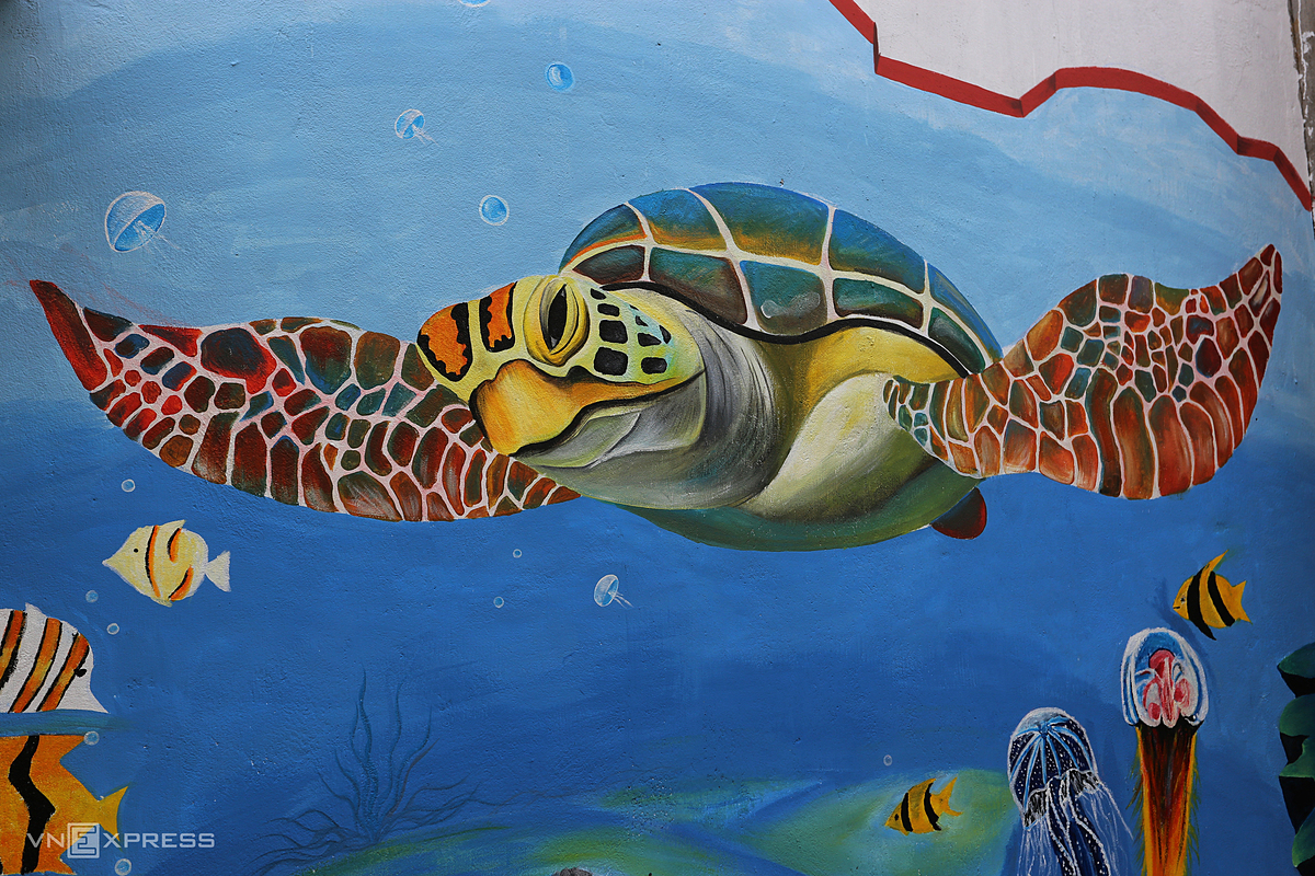 A sea turtle reminds visitors and residents of the importance of protecting marine life. Sea turtles are typically returned to the ocean if caught here.The turtle species has seen a steep decline elsewhere in Vietnam, with the number of animals laying eggs annually in the country decreasing from around 10,000 in the 1980s to 450 in 2019, a study by the Institute of Marine Environmental Research found. The species is threatened due to pollution and loss of nesting areas because of coastal development, coupled with their inherently slow growth, maturity and reproductive rates. Most sea turtles are classified as endangered and needing prioritized protection. Hunting or trading them, listed in Vietnam's Red Book of endangered species, is a crime in the country. |