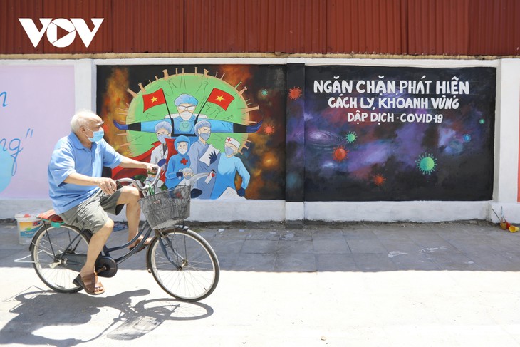 The project was initially launched by the youth union of Ha Dong district with the aim of providing information about the pandemic. Mural paintings are featured throughout Vu Trong Khanh street in Ha Dong district. |
