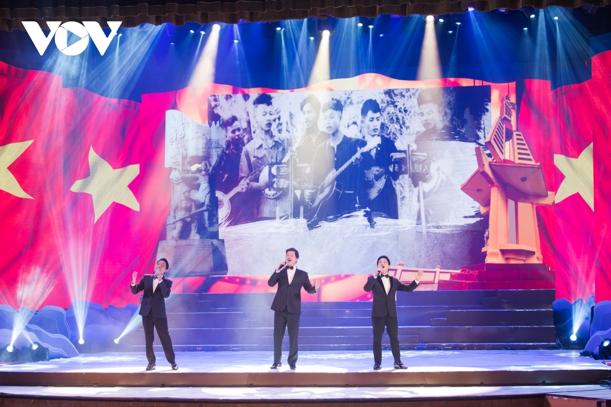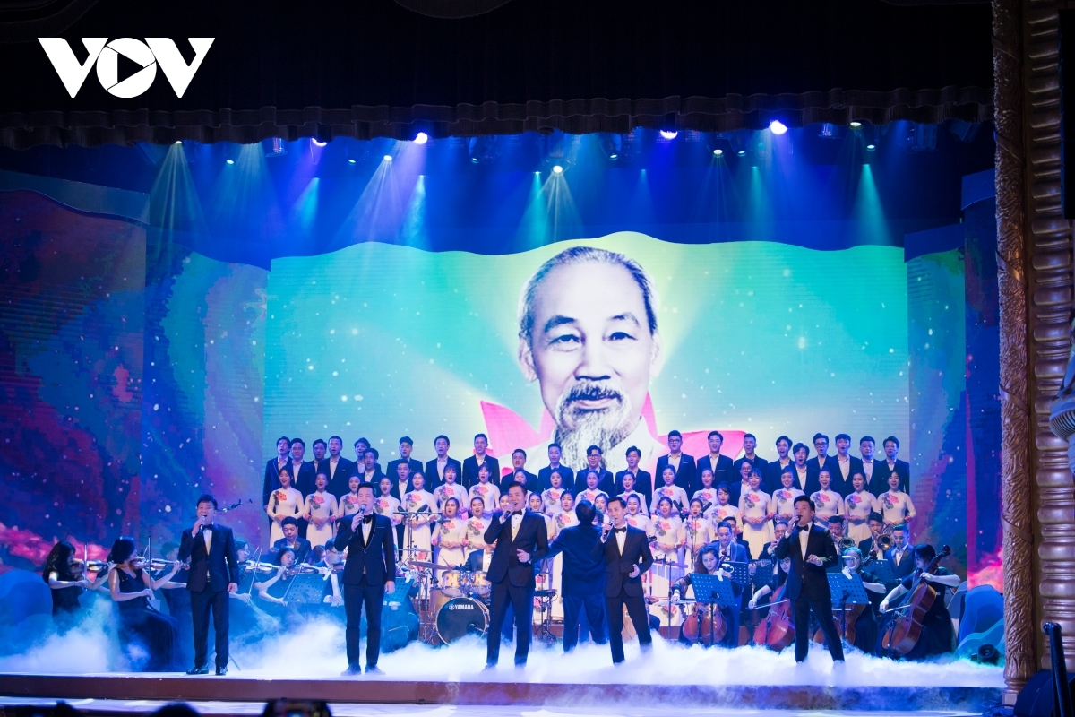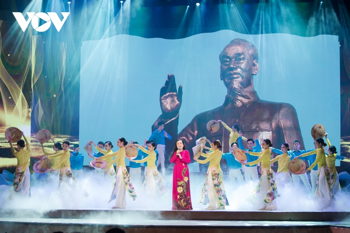Artists perform various songs and dances in praise of patriotism and the deeds of President Ho Chi Minh. |
