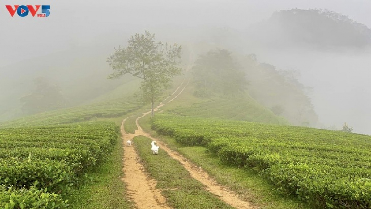 During late autumn and in the early winter period, the Long Coc tea hill in northern Vietnam is left blanketed by fog.