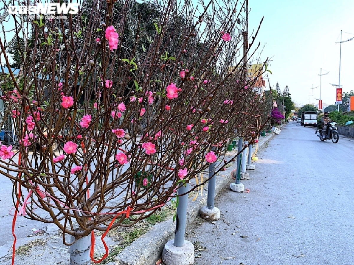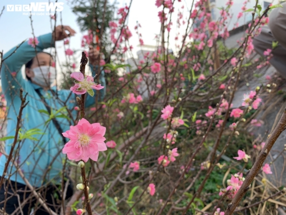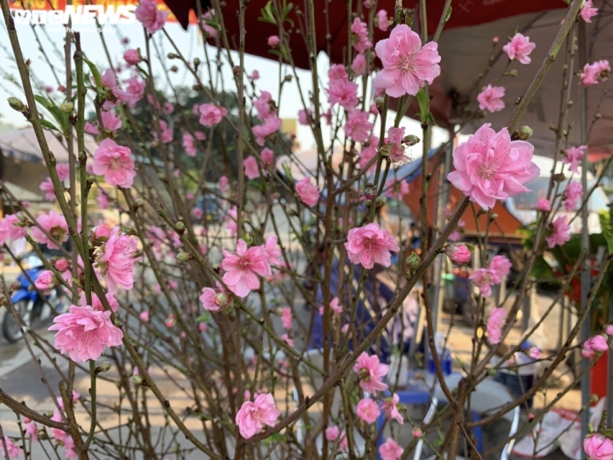 According to a trader, the peach blossoms are sold at various prices ranging from 200,000 VND (8.5 USD) to 800,000 VND each, depending on the size. |