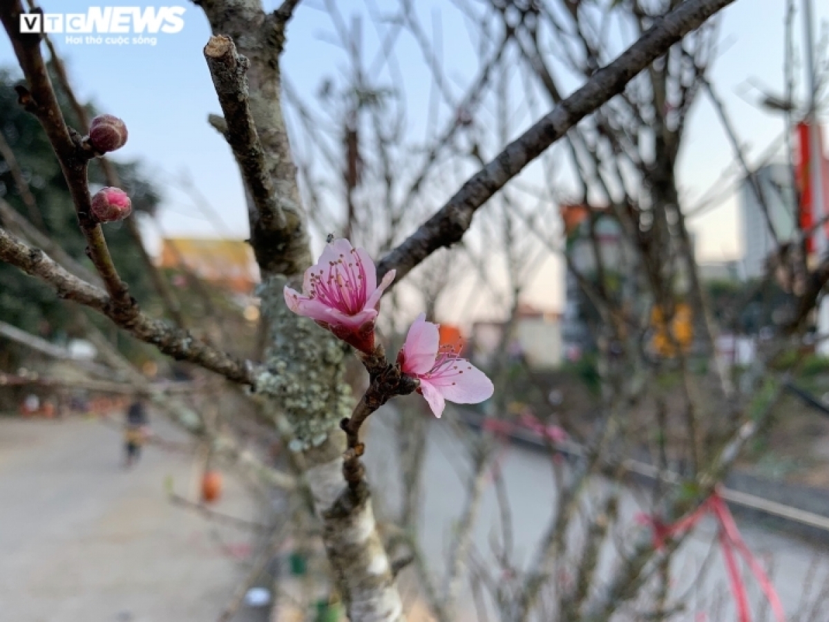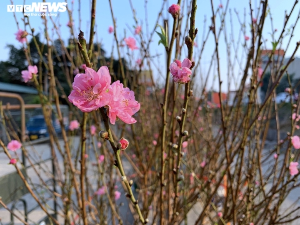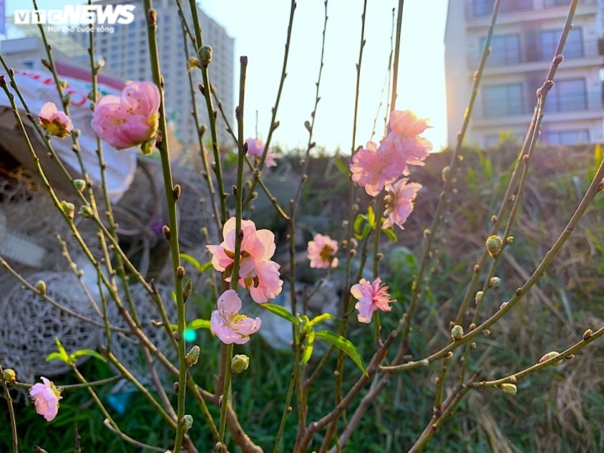 According to a trader, the peach blossoms are sold at various prices ranging from 200,000 VND (8.5 USD) to 800,000 VND each, depending on the size. |